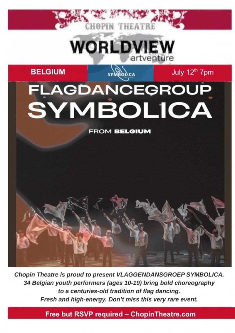 Chopin Theatre is pleased to present a free public performance by Vlaggendansgroep Symbolica on Saturday, July 12, at 7 PM. This energetic youth group (ages 10-19) from Genk, Belgium brings a 50-year tradition of flag dancing, sharing their art across Europe and now North America. The performance by 34 youth dancers features vibrant, contemporary choreography, offering a fresh take on a time-honored tradition.