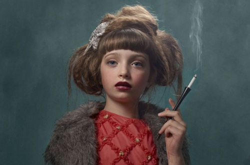 “Smoking Kids,” an exhibition by photographer Frieke Janssens, confronts the persistence of smoking as a cultural status symbol by using child models posing with cigarettes. Although cigarettes were not allowed on the premises of Janssens’ photo shoots and her subjects, aged 4 through 9, held fake cigarettes made from cheese, incense and candles, the images highlight the normalization of cigarette smoking and its glorification as a hallmark of the retro aesthetic. Combining child models and vintage imagery, the show prompts audiences to consider what smoking has meant in the past and what it will become in the future.